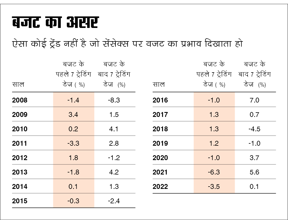 हालांकि ये कोई ट्रेंड नहीं है। और बहुत सारे फैक्टर हैं जो बाजार के उतार-चढ़ाव को प्रभावित करते हैं, ऐसे में बजट की घोषणा को एक प्रमुख वजह बताना मुश्किल है।