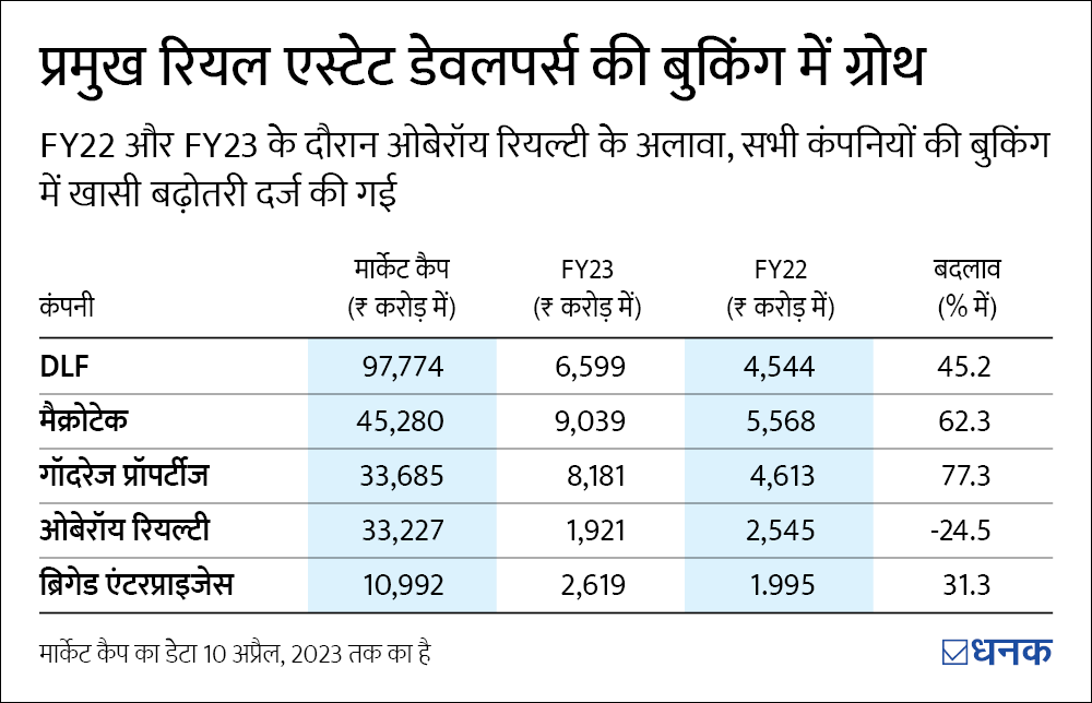 आप देख सकते हैं कि इन सभी की बुकिंग में असाधारण बढ़ोतरी हुई है. गोदरेज प्रॉपर्टीज (Godrej Properties) और मैक्रोटेक (Macrotech) ने फ़ाइनेंशियल ईयर 23 के शुरुआती 9 महीनों में रिकॉर्ड बुकिंग दर्ज की.