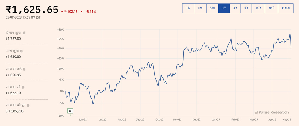 हमारे स्टॉक पेज पर, ‘ओवरव्यू’ पर क्लिक करने पर आपको सबसे ज़्यादा व्यापक प्राइस ग्राफ मिलेगा. डिफॉल्ट रूप में हम आपको स्टॉक की एक साल की प्राइस हिस्ट्री दिखाएंगे. लेकिन आप इसमें बदलाव कर सकते हैं और किसी भी पीरियड पर क्लिक करके प्राइस हिस्ट्री हासिल कर सकते हैं.