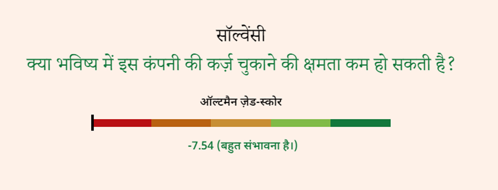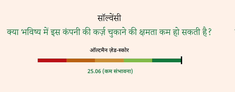 अब सर्च करने पर स्पाइस जेट से जुड़ी कई अहम डिटेल सामने आती हैं. यहां, थोड़ा नीचे स्क्रॉल करने पर आपको कंपनी की दिवालिया होने की आशंकाएं स्पष्ट नजर आ जाएंगी. यहां साफ लिखा है, "इसकी क़र्ज़ चुकाने की क्षमता कम होने की ख़ासी संभावनाएं हैं." कंपनी को ऑल्टमैन जेड स्कोर पर काफ़ी कम अंक दिए गए हैं.