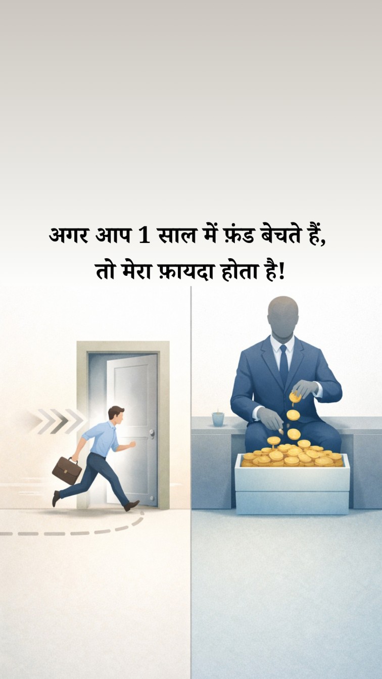 जब आप 1 साल के भीतर बेचते हैं, तो अक्सर एग्ज़िट लोड लगता है. अहम बात ये है कि यह पैसा फ़ंड हाउस के पास नहीं जाता. यह वापस फ़ंड में जुड़ता है और पोर्टफ़ोलियो को मज़बूत करता है. यानी आप जल्दी निकलते हैं, पेनल्टी भरते हैं, और फ़ायदा मुझे मिलता है.