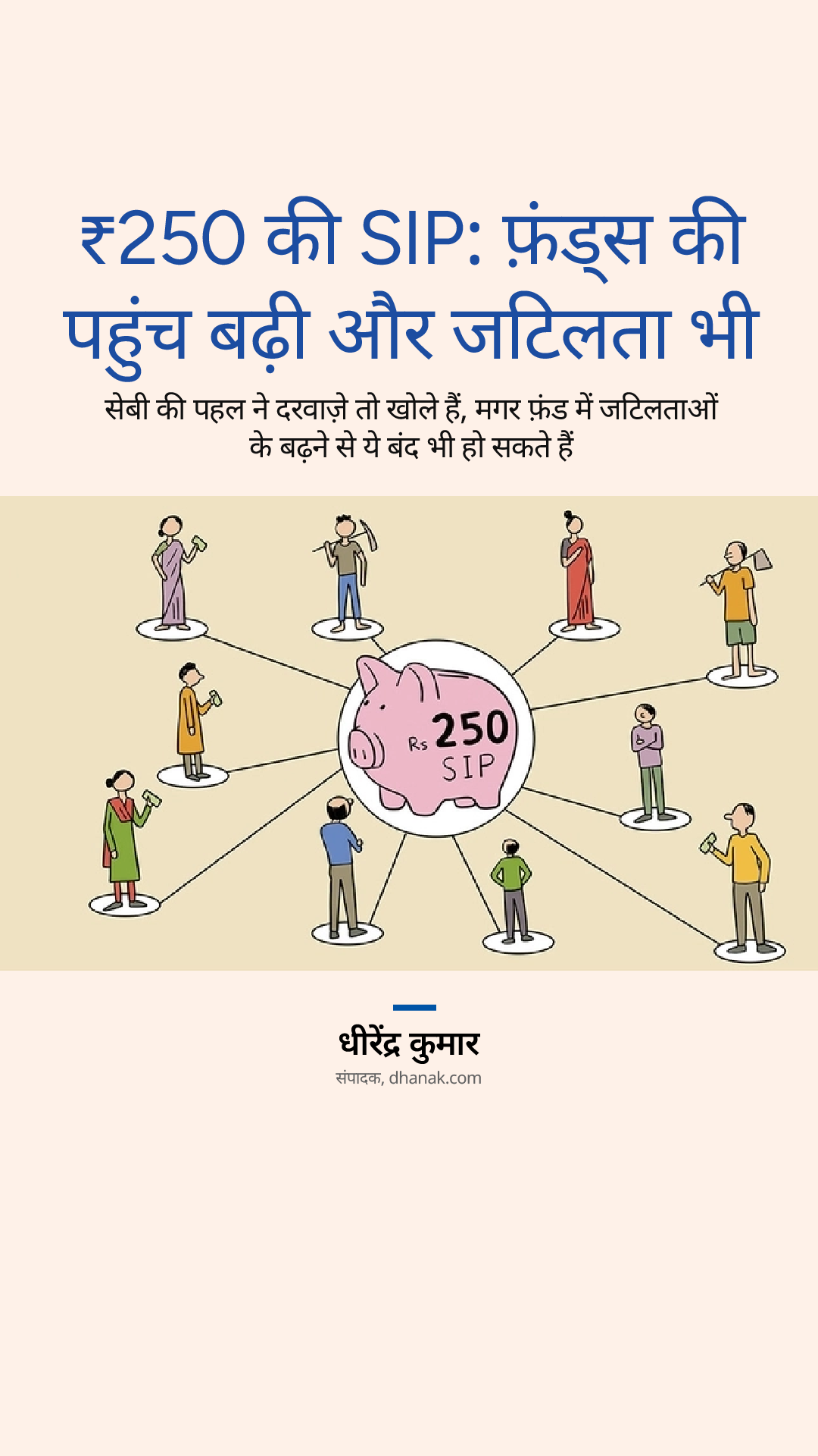 सेबी ने हाल में घोषणा की कि अगले तीन साल में केवल ₹250 प्रति माह की SIP के ज़रिए म्यूचुअल फ़ंड में निवेश किया जा सकेगा. इसके लागू होने से भारत में म्यूचुअल फ़ंड निवेश की पहुंच बढ़ सकती है.